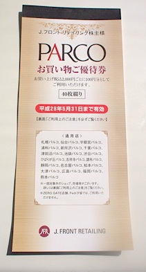 10日程前にJフロントリティリングの優待品(大丸・松坂屋お買い物ご優待カード・パルコお買い物ご優待券)が届きました。