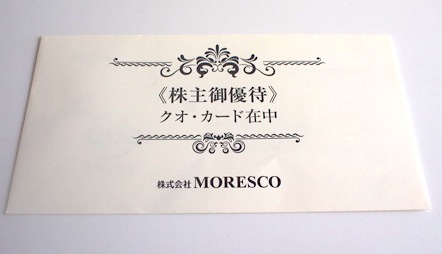 先日、モレスコから株主優待品のクオカード<1000円分>が届きました。